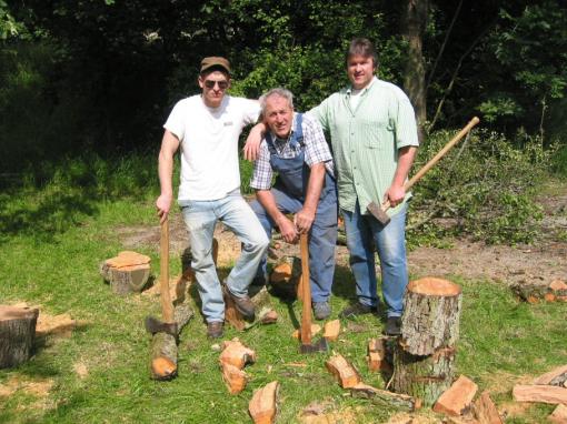 Nach dem der Baum gefällt war, ging es ans zerlegen. Fabian verausgabte sich so mit der Axt, dass er noch vor dem Mittag wieder ins Bett musste um ´ne Runde zu schlafen
