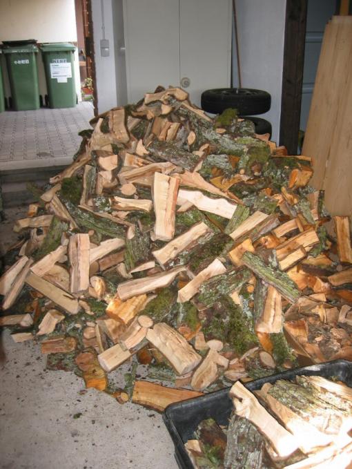 Bereits auf dem Stückle zersägt und zerhackt, brachten Rolf und Herbert immer wieder eine Ladung Holz und schmissen alles kurzer Hand in die Hütte. Da war es dann schon mal an Ort und Stelle und aufräumen kann man ja später